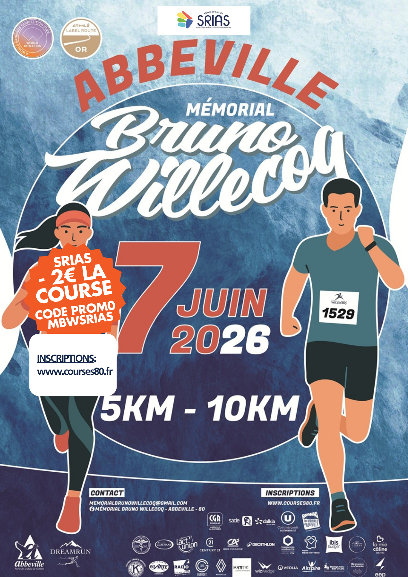 La SRIAS HDF est partenaire de la course Mémorial Bruno WILLECOQ ABBEVILLE 80 qui se déroulera le dimanche 7 juin 2026.